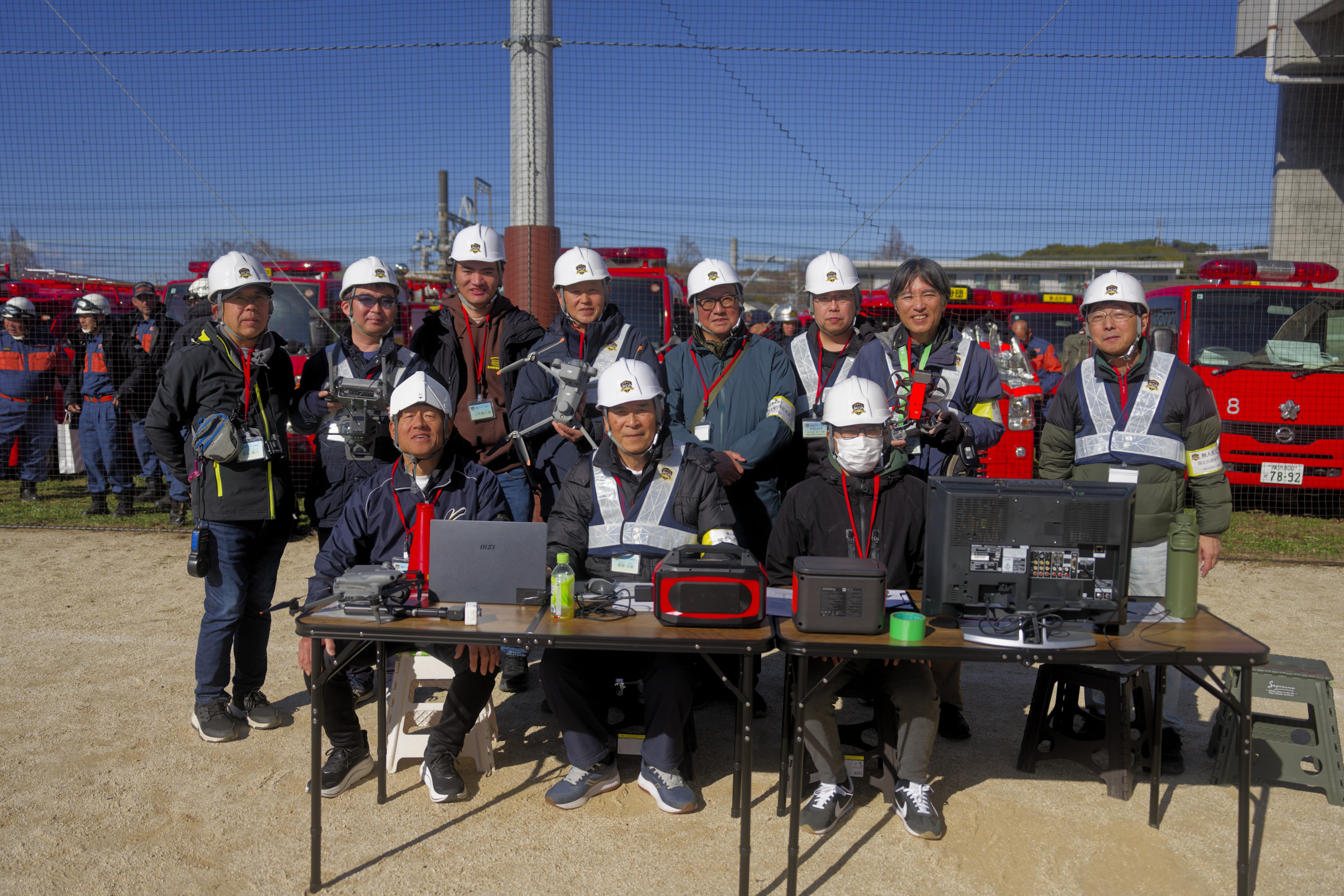 令和8年鎌倉市消防出初式 Posted on 2026-01-12Updated on 2026-01-12by 鎌倉ドローン協会カテゴリー:活動報告 令和8年1月6日の鎌倉市消防出初式に参加しました。晴天の中、式典、まとい振込、はしご乗り等が行われ、消防車両紹介時に鎌倉ドローン協会が所有するドローン機体の紹介もあり、MATRICE4Tのスピーカとスポットライトを使用して年始の挨拶を行いました。当日は天気も良く風の影響も少なく、参加会員にとっても良い訓練となりました。写真は出初式に参加した会員での集合写真です。また、当日の動画も後日公開予定です。